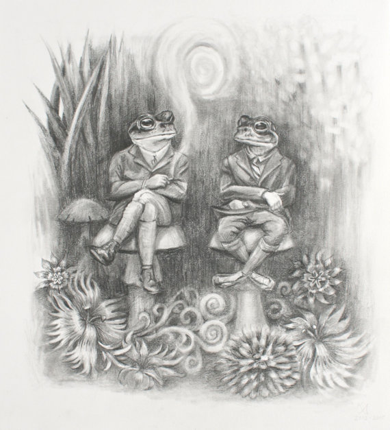 | Dapper Frogs Sitting on Toadstools. |