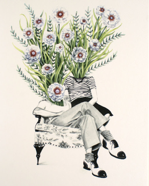 I feel just terrible that I didn't get this lovely girl's interview up sooner. My deepest apologies--this spring has been incredibly busy. Without further ado, here is an interview with a very talented artist I think all of you will enjoy. She particularly catches my eye with her vintage-y people and great combination of color and black and white. Please get to know Kaetlyn Able: